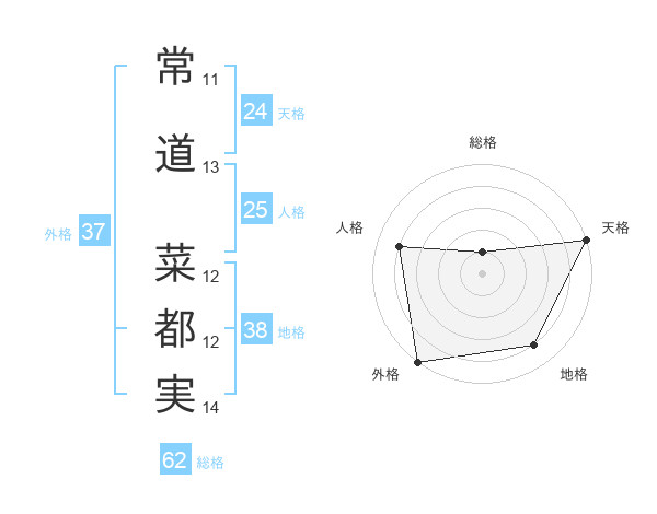 常道 菜都実さんを姓名の画数から五運を鑑定