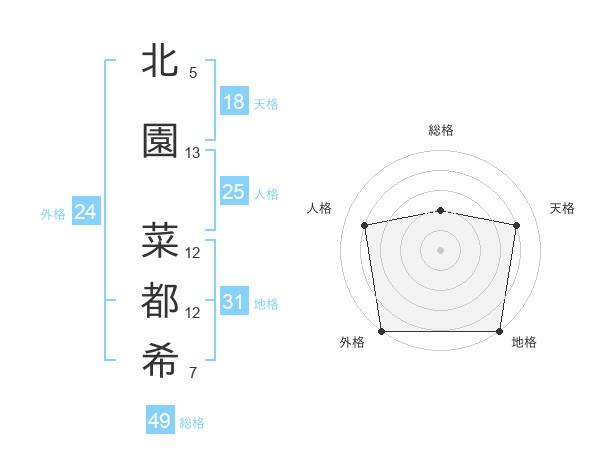 北園 菜都希さんを姓名の画数から五運を鑑定
