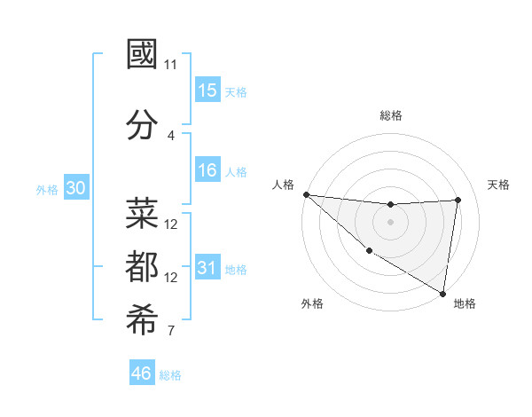 國分 菜都希さんを姓名の画数から五運を鑑定
