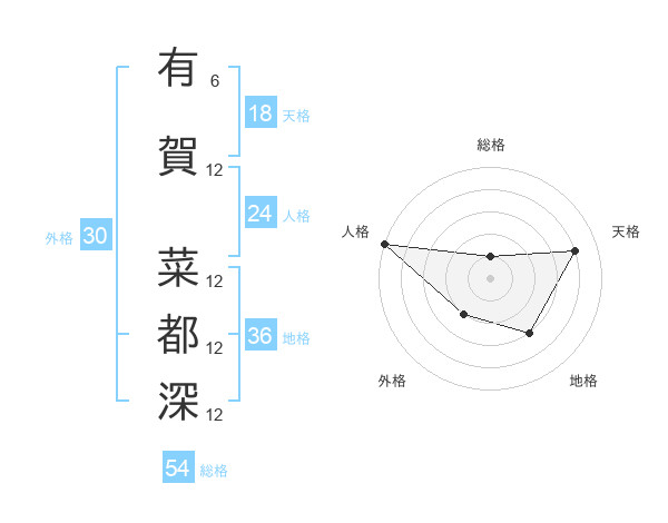 有賀 菜都深さんの総格は54画の1点!