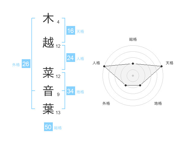 木越 菜音葉さんを姓名の画数から五運を鑑定