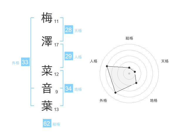 梅澤 菜音葉さんの外格は33画の4点
