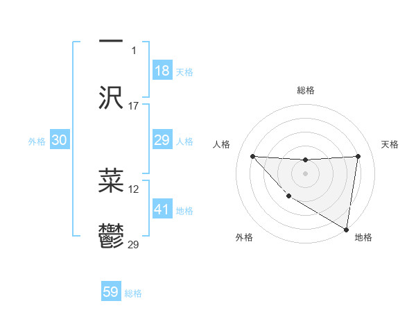 一沢 菜鬱さんを姓名の画数から五運を鑑定