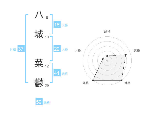 八城 菜鬱さんを姓名の画数から五運を鑑定