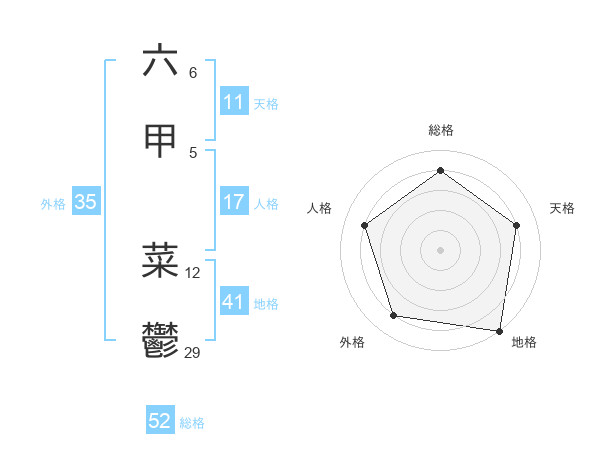 六甲 菜鬱さんを姓名の画数から五運を鑑定