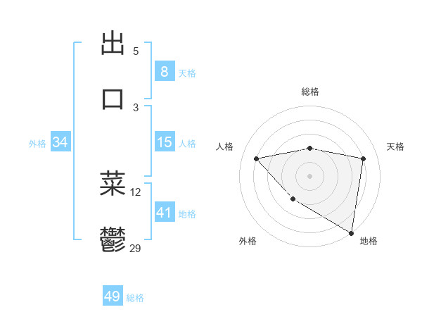 出口 菜鬱さんを姓名の画数から五運を鑑定