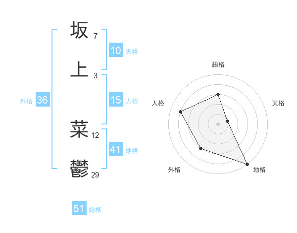 坂上 菜鬱さんの総格は51画の3点!
