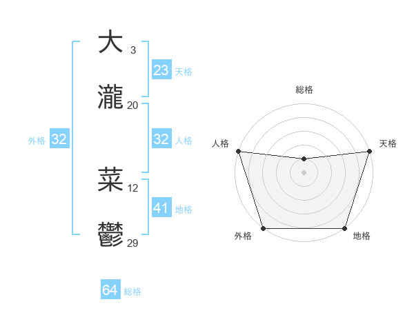 大瀧 菜鬱さんを姓名の画数から五運を鑑定