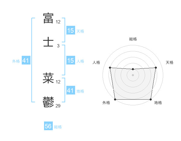 富士 菜鬱さんの天格は15画の4点!
