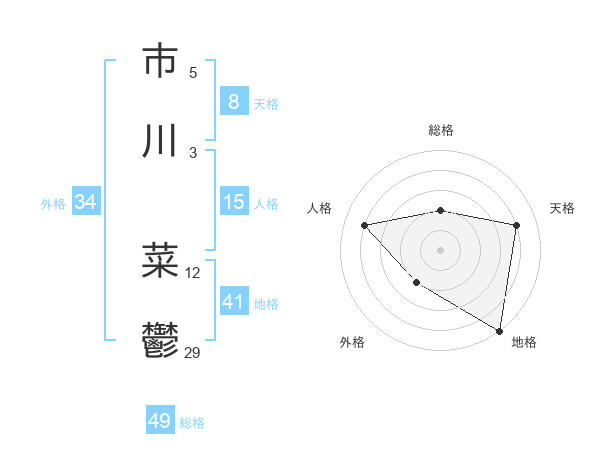 市川 菜鬱さんの総格は49画の2点!