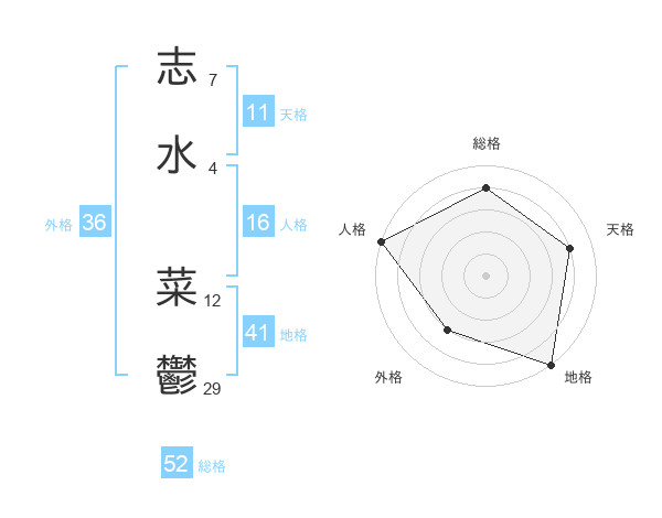 志水 菜鬱さんの総格は52画の4点!