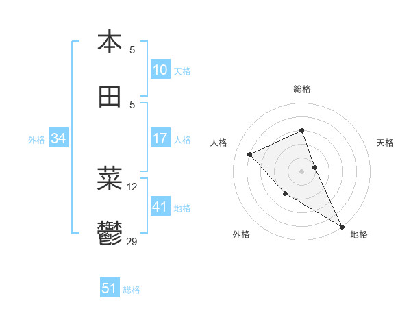 本田 菜鬱さんを姓名の画数から五運を鑑定