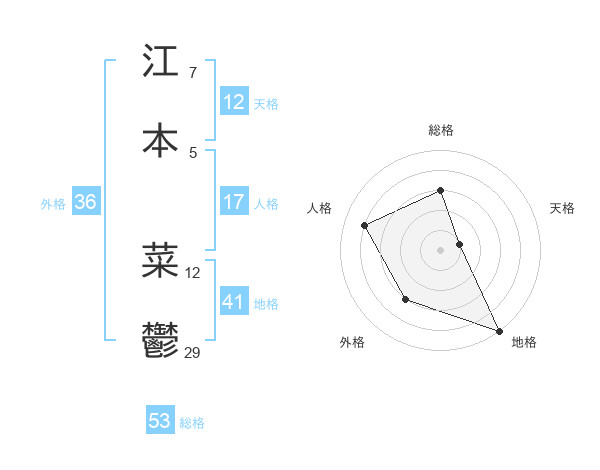 江本 菜鬱さんの総格は53画の3点!