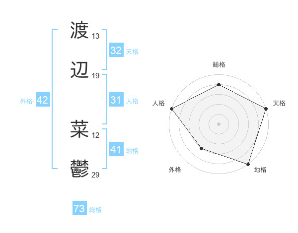 渡辺 菜鬱さんの総格は73画の4点!