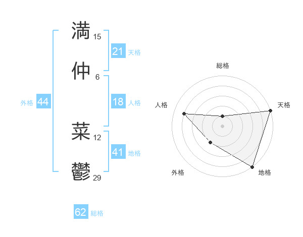 満仲 菜鬱さんを姓名の画数から五運を鑑定