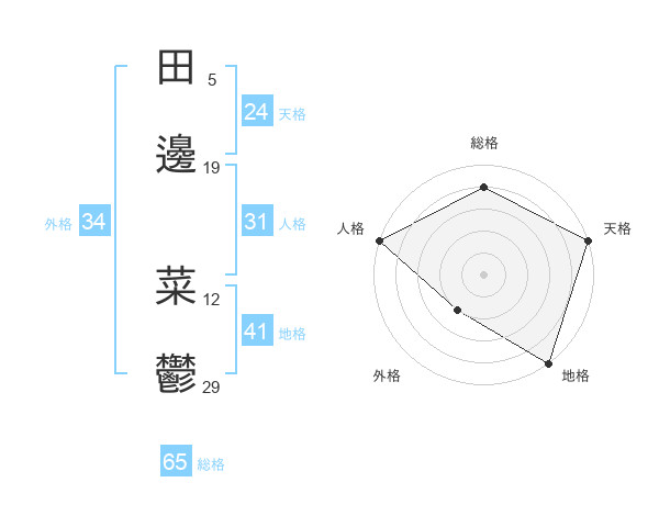 田邊 菜鬱さんを姓名の画数から五運を鑑定