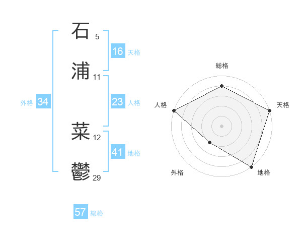 石浦 菜鬱さんを姓名の画数から五運を鑑定