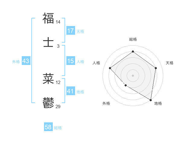 福士 菜鬱さんを姓名の画数から五運を鑑定