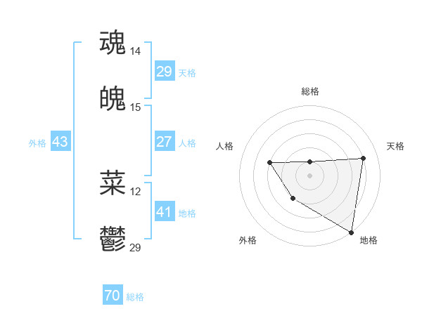 魂魄 菜鬱さんの総格は70画の1点!