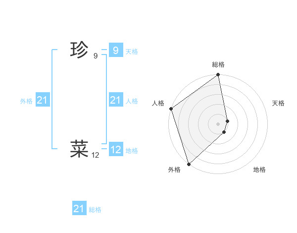 珍 菜さんの総格は21画の5点!