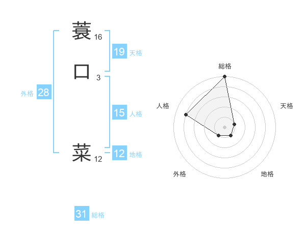 蓑口 菜さんの総格は31画の5点!