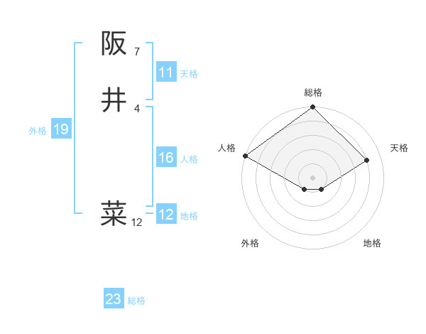 阪井 菜さんの総格は23画の5点!