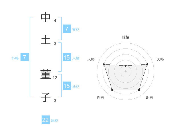 中土 菫子さんの総格は22画の1点!