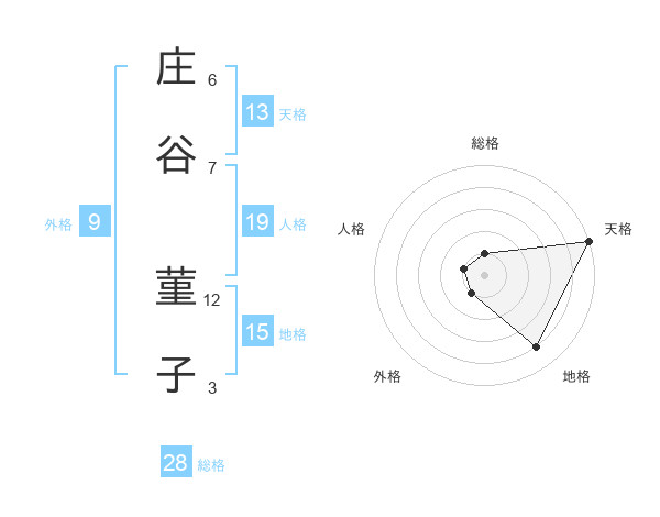 庄谷 菫子さんの天格は13画の5点!
