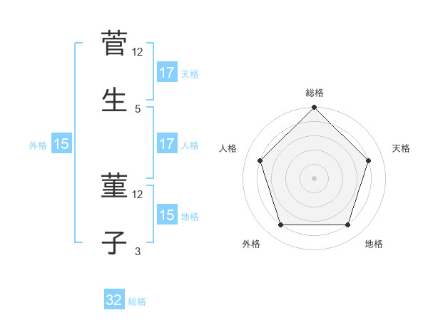 菅生 菫子さんの天格は17画の4点!