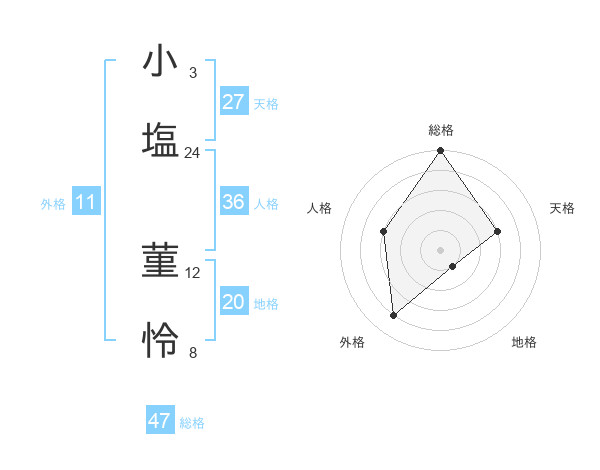 小塩 菫怜さんの総格は47画の5点!