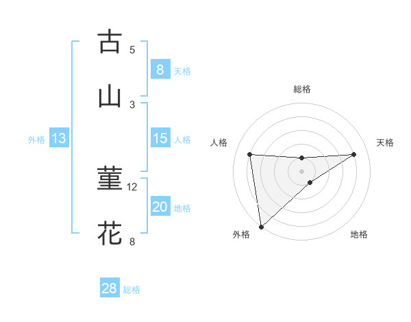 古山 菫花さんの外格は13画の5点