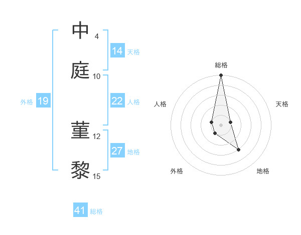 中庭 菫黎さんの総格は41画の5点!