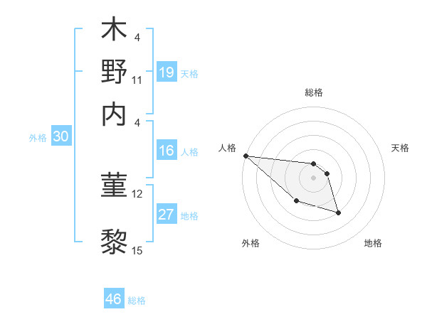 木野内 菫黎さんの総格は46画の1点!