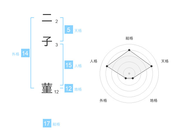 二子 菫さんの総格は17画の4点!