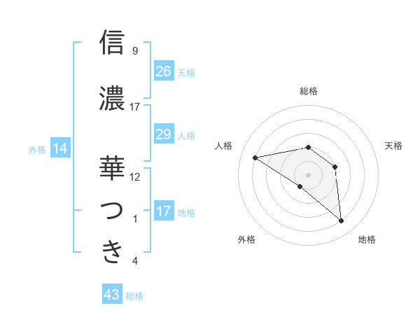 信濃 華つきさんの地格は17画の4点!