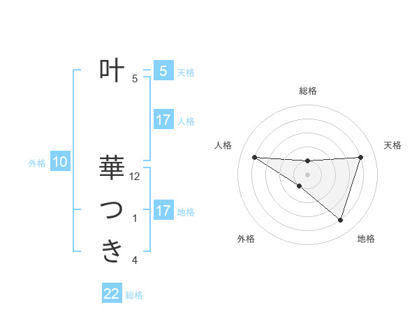 叶 華つきさんの総格は22画の1点!