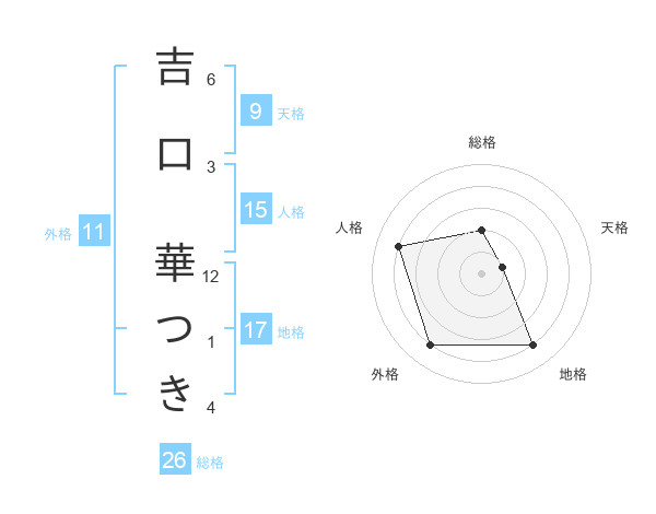 吉口 華つきさんの総格は26画の2点!