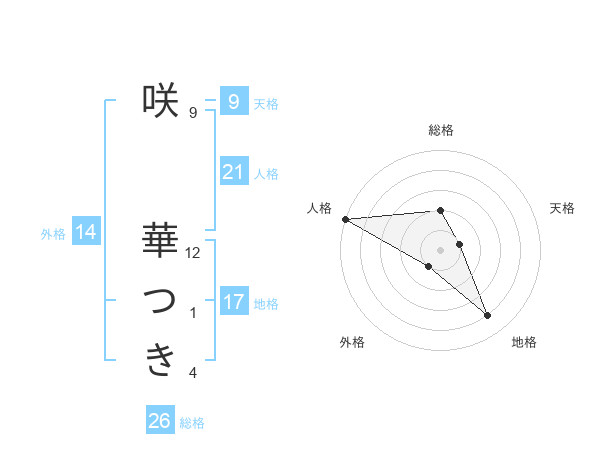 咲 華つきさんの地格は17画の4点!