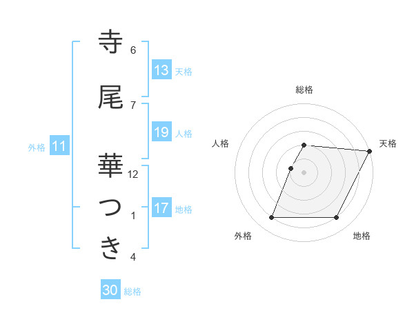 寺尾 華つきさんの天格は13画の5点!