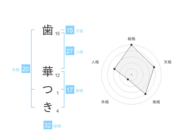 歯 華つきさんの天格は15画の4点!