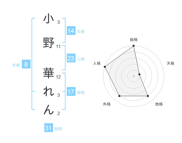 小野 華れんさんの総格は31画の5点!