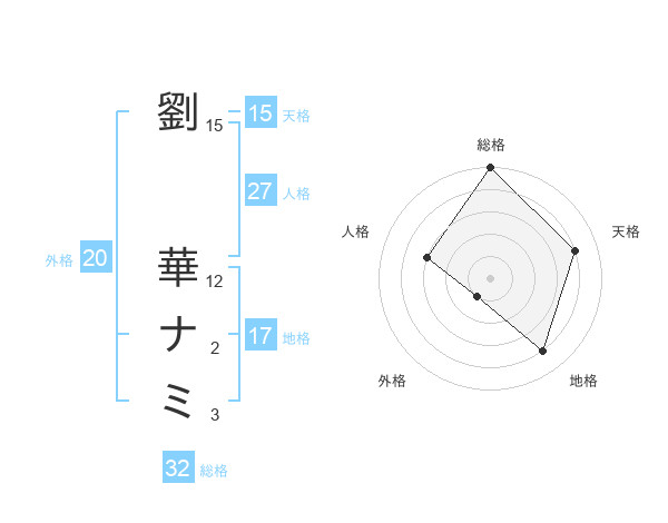 劉 華ナミさんの総格は32画の5点!