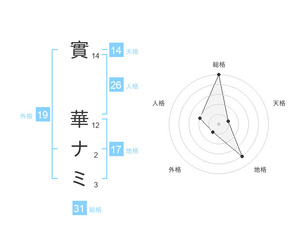 實 華ナミさんの天格は14画の1点!