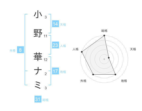 小野 華ナミさんを姓名の画数から五運を鑑定