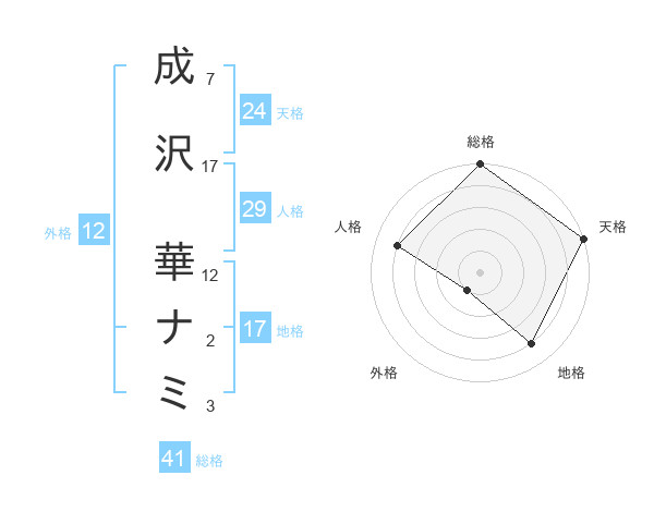 成沢 華ナミさんの天格は24画の5点!