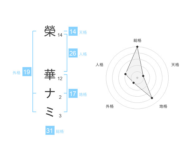 榮 華ナミさんを姓名の画数から五運を鑑定