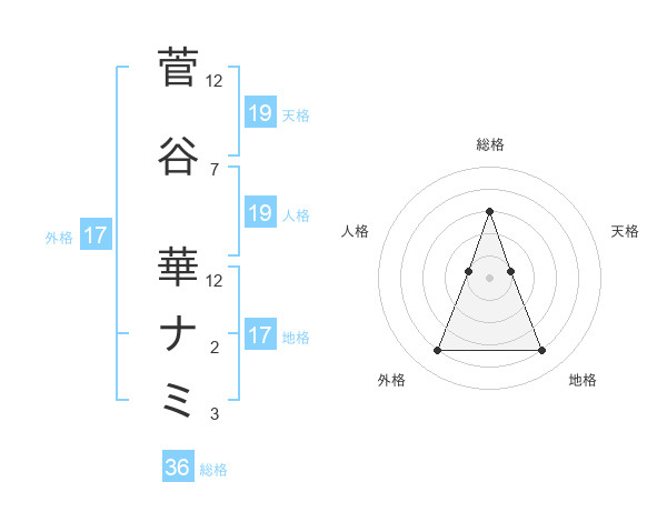菅谷 華ナミさんの天格は19画の1点!