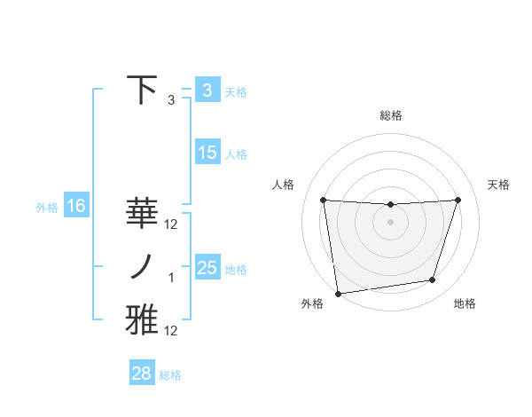 下 華ノ雅さんを姓名の画数から五運を鑑定