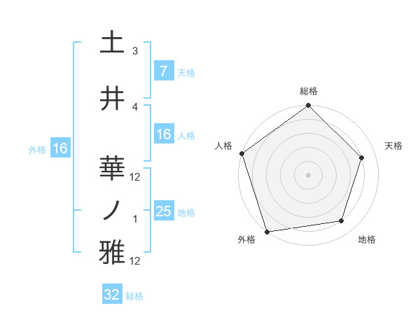 土井 華ノ雅さんを姓名の画数から五運を鑑定