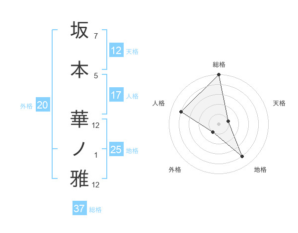 坂本 華ノ雅さんの総格は37画の5点!
